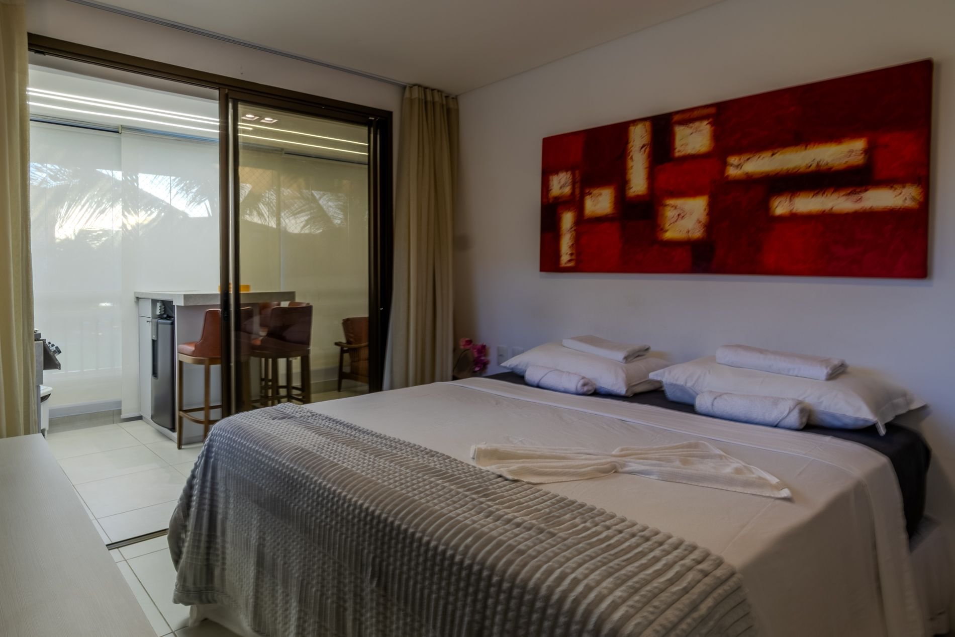 Apartamento com 112m2, 1o Andar - acesso por escada, no Condomínio Turístico Mandara Lanai. O apartamento possui 4 quartos e 4 Banheiros (02 suítes, 01 quarto, 01 lavabo e 01 dependência), ar-condicionado, cortinas, sala de estar climatizada, cozinha completa e equipada, área de serviço com máquina de lavar, varanda climatizada, cortina de vidro, cortina retrátil, tela de proteção, cervejeira, enxoval de cama e banho e 03 vagas privativas cobertas. Atração incrível do beach park fica a 4 km de distância. Melhor meio de transporte até o Condomínio é de veículo, aplicativos de transporte funcionam bem. Transporte público com parada de ônibus em frente a entrada do condomínio.