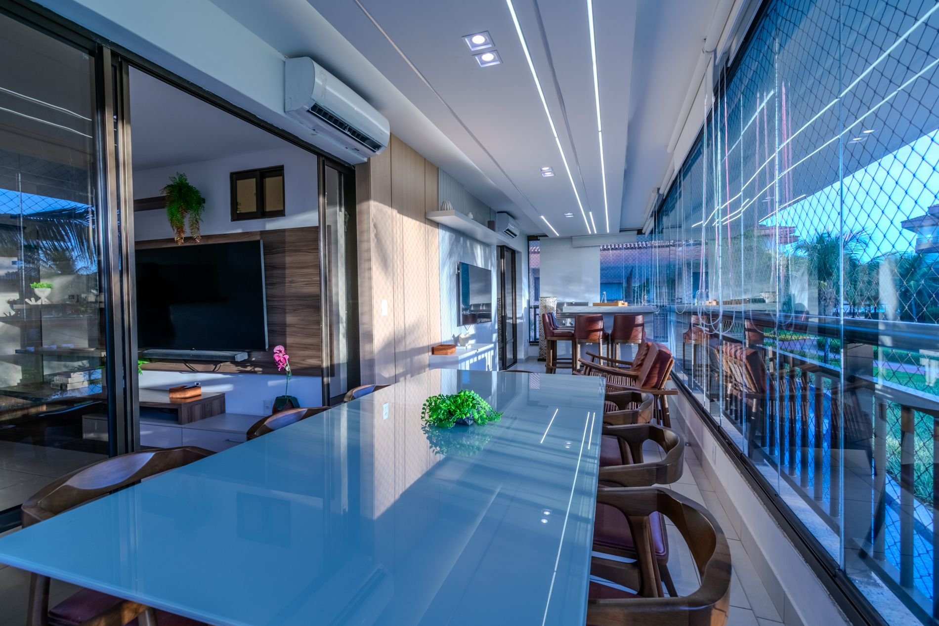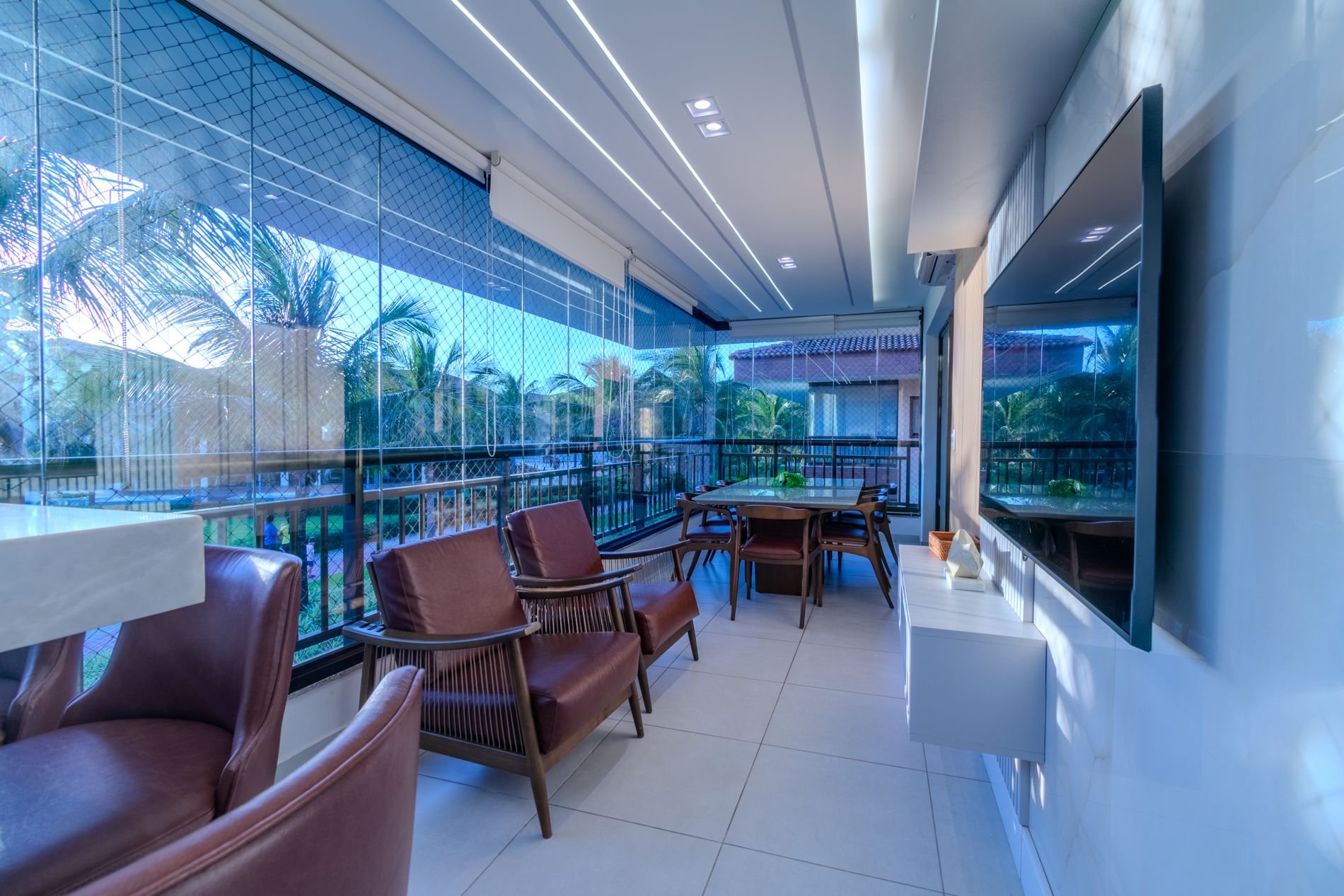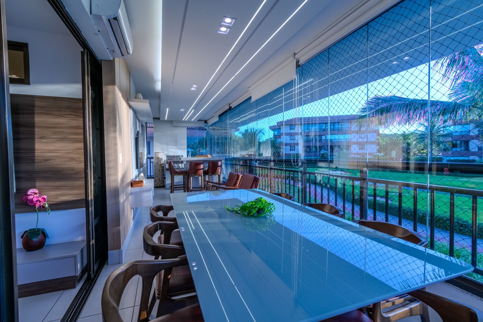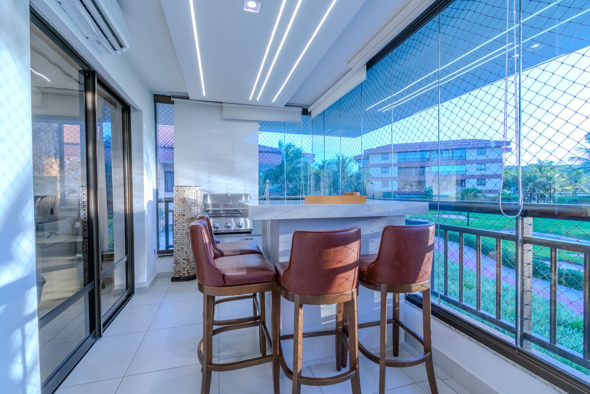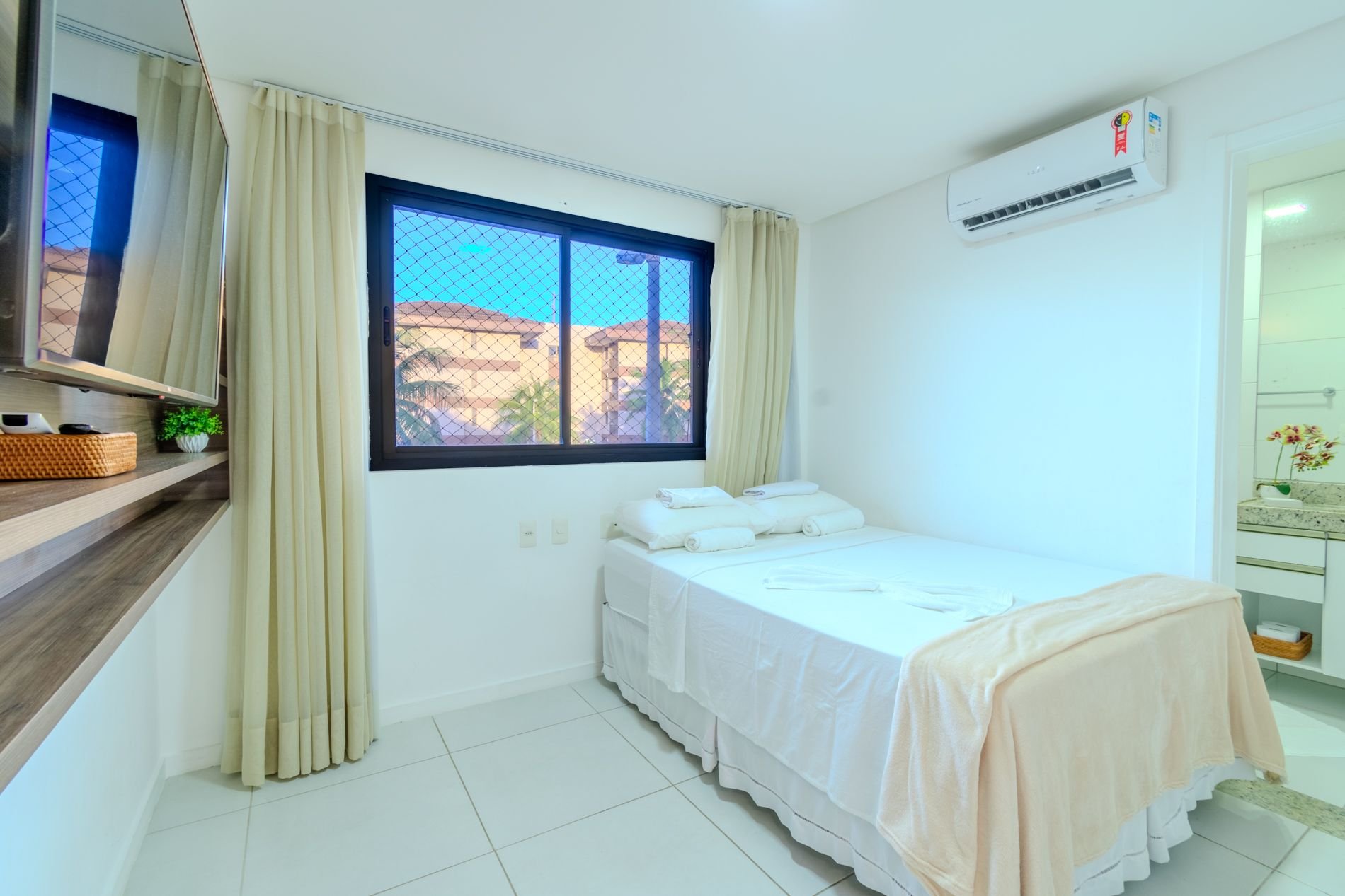 Apartamento com 112m2, 1o Andar - acesso por escada, no Condomínio Turístico Mandara Lanai. O apartamento possui 4 quartos e 4 Banheiros (02 suítes, 01 quarto, 01 lavabo e 01 dependência), ar-condicionado, cortinas, sala de estar climatizada, cozinha completa e equipada, área de serviço com máquina de lavar, varanda climatizada, cortina de vidro, cortina retrátil, tela de proteção, cervejeira, enxoval de cama e banho e 03 vagas privativas cobertas.