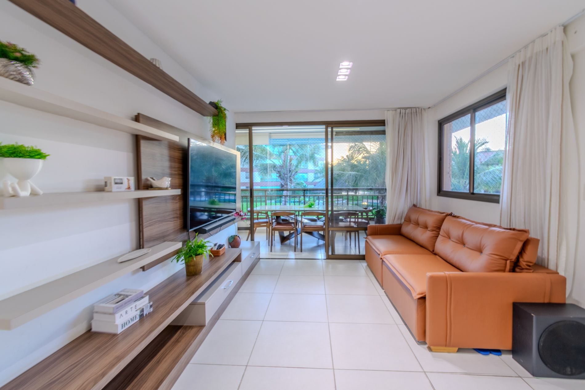 Apartamento com 112m2, 1o Andar - acesso por escada, no Condomínio Turístico Mandara Lanai. O apartamento possui 4 quartos e 4 Banheiros (02 suítes, 01 quarto, 01 lavabo e 01 dependência), ar-condicionado, cortinas, sala de estar climatizada, cozinha completa e equipada, área de serviço com máquina de lavar, varanda climatizada, cortina de vidro, cortina retrátil, tela de proteção, cervejeira, enxoval de cama e banho e 03 vagas privativas cobertas. Atração incrível do beach park fica a 4 km de distância. Melhor meio de transporte até o Condomínio é de veículo, aplicativos de transporte funcionam bem. Transporte público com parada de ônibus em frente a entrada do condomínio.