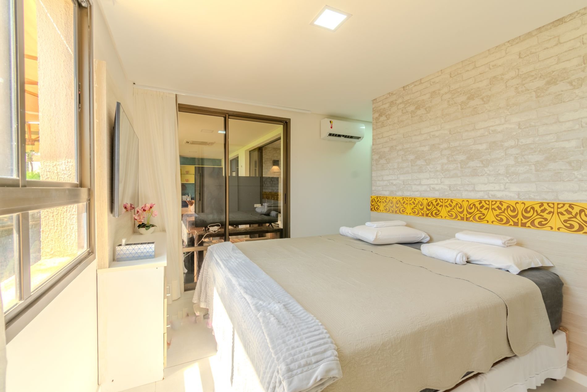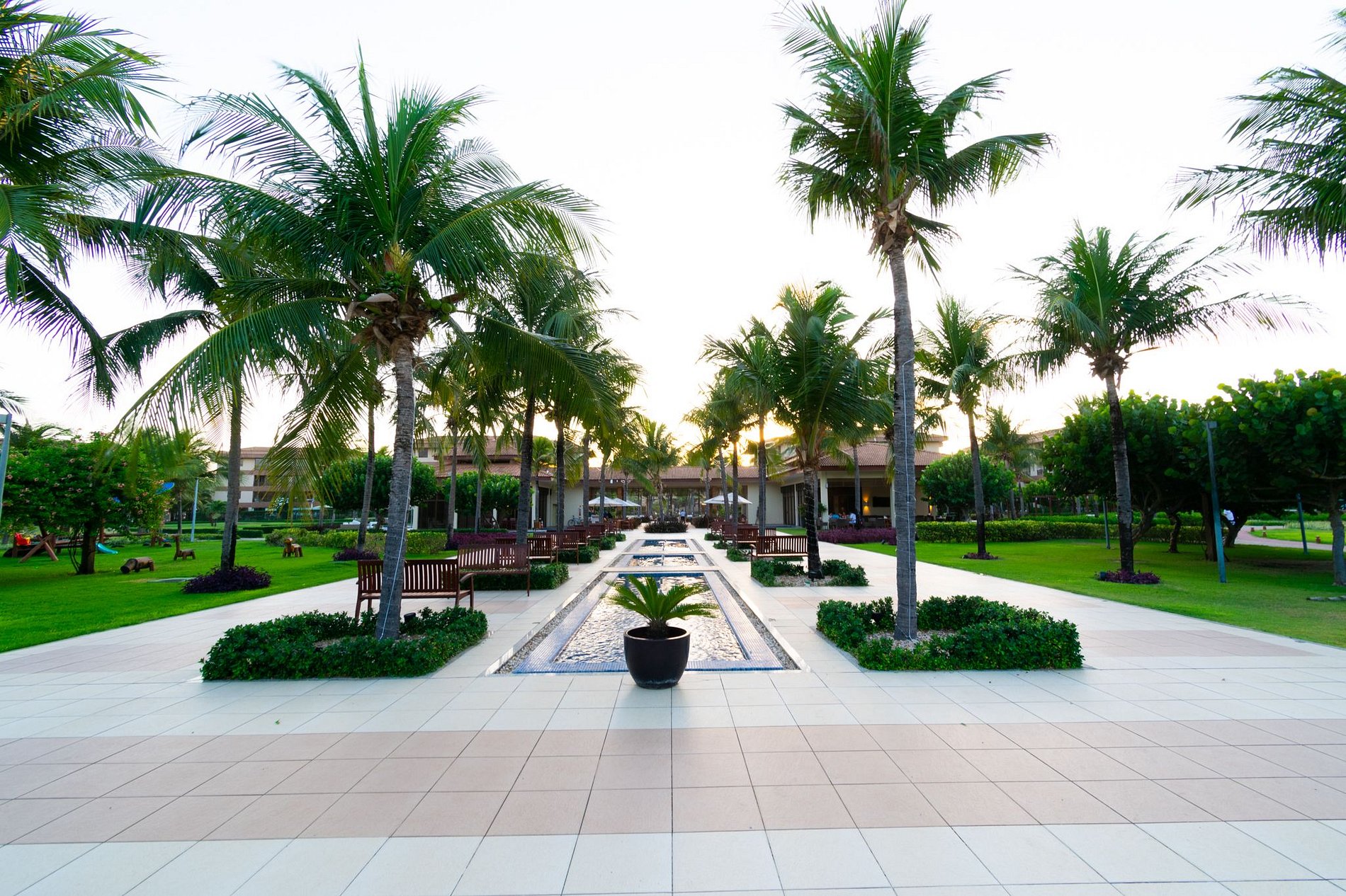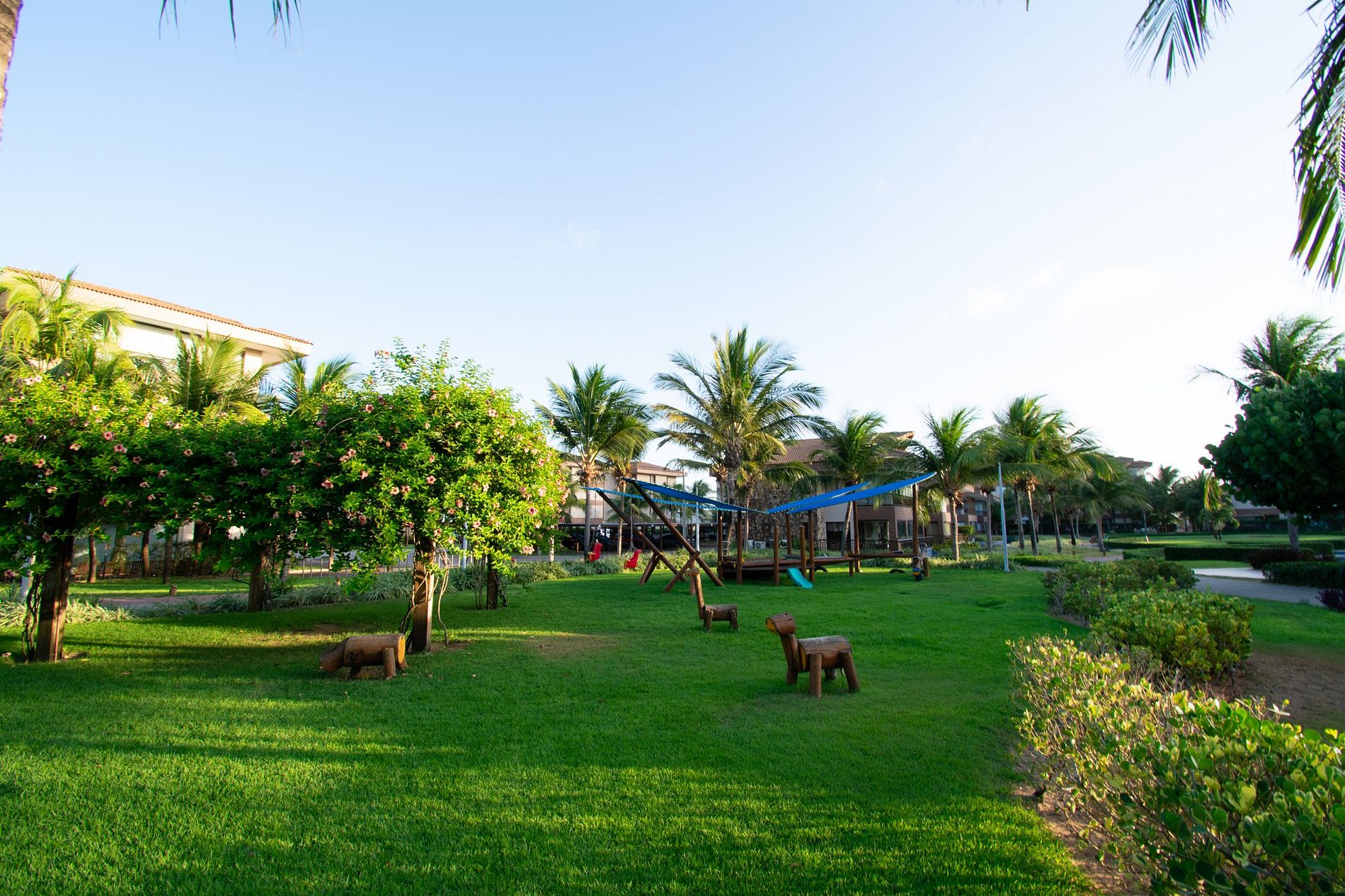 Piscina, quadras de beach tennis, restaurantes…